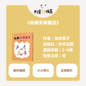 《烏鴉幸福商店系列》繪本作品自1973年推出第一本作品,已陪伴三代的孩子長大成人,是日本家喻戶曉的人氣角色。並且在四十年後,作者加古里子終於帶著四本續作回歸,延續第一部作品,講述四隻烏鴉寶寶長大後的故事。時至今日,台灣首次以正體中文再版這套烏鴉幸福商店系列繪本,藉著這次機會,就讓台灣讀者們跟著MindDuo拜讀這套暢銷半個世紀的經典作品吧!