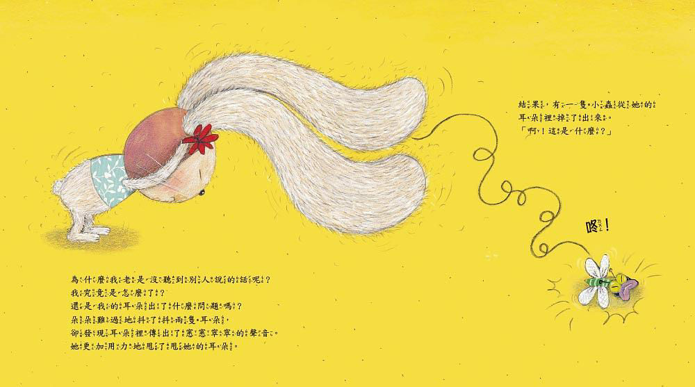 雖然小兔子朵朵耳朵大,但確時常忘東忘西,別人說過的話總是記不住,在家或在外面都時常添麻煩。一次、兩次也還好,但經過越來越多次的事件,他也忍不住地懷疑自己到底是哪裡做錯了。想不到,忍不住抖了一抖他的耳朵後,居然跑出來一隻小蟲!?