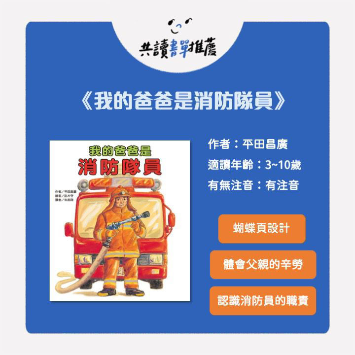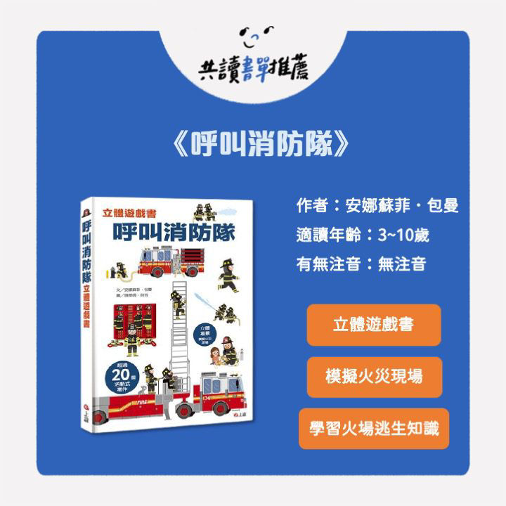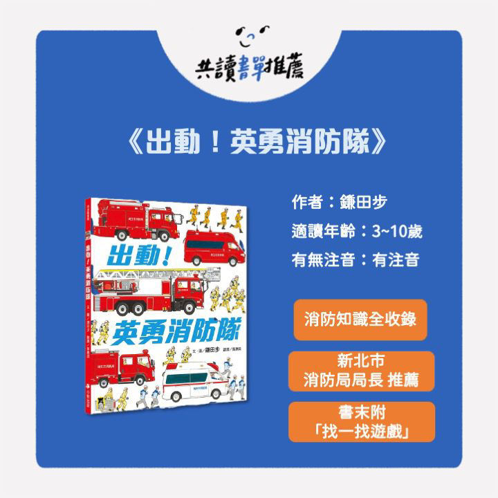 還記得今年一齣熱門的消防職人電視劇《火神的眼淚》,探討在消防人員的職場困境及工作的辛酸,讓許多觀眾對這份高度危險的工作更加了解。無論是在日常上給予民眾最及時的協助,或是在火場上冒著生命危險執行的救援行動,這些工作內容讓觀眾對這份職業有更深的感觸與敬佩。除了在電視劇感受外,以下推薦四本消防繪本,用更為輕鬆、適合年幼孩童的角度,介紹消防隊員,讓孩子能從小對職業有更多的理解,並且產生不同的興趣,學習尊重各項職業,將這些養分成為成長的基礎。