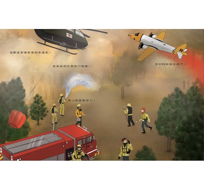 這篇故事的主角是樹也是大自然,從中我們可以重新思考我們和大自然的關係。本書啟發自美國科羅拉多州真實森林火災的故事,對於台灣的孩子甚至父母來說,自然與森林大火不見得是那麼近的事物與事件,然而,大自然確實身在我們四周,也確實肩負著人們的生活品質良好與否。