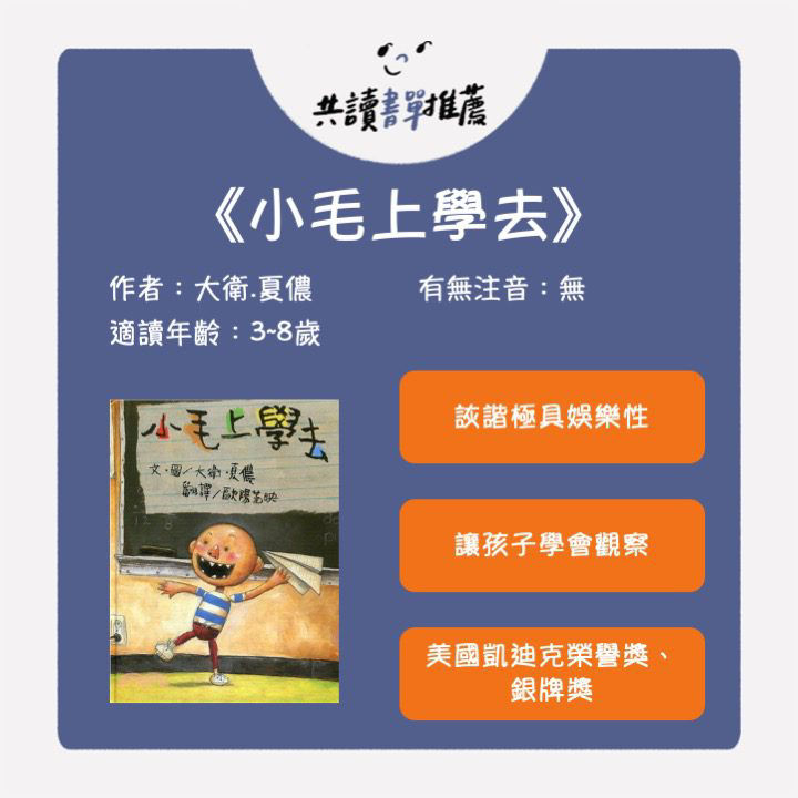 當然,孩子能帶入不同的人物,這本書中不只小毛一個角色,孩子也可以以他人的視角看待事情。另一方面,爸爸媽媽也能適時地在一旁提點,避免在學校中發生的糗事。