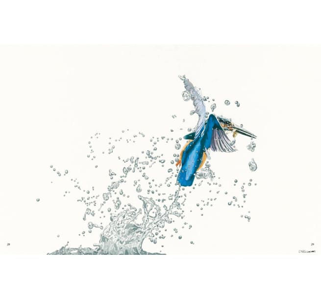 翠鳥的動作快速、羽毛絢麗,因此不易觀察,也不易描繪。邱承宗老師花費了2年的時間、7000張照片記錄及觀察翠鳥的生態,希望透過畫家的視角,帶大家認識這抹在水邊出現的藍色光影。細膩生動的生物姿態與富光影變化的水邊景觀可說是閱讀此書的一大享受, 書中以小男孩的視角與口吻,帶讀者走一趟池塘邊的翠鳥觀察旅行。透過畫家的描繪,我們能凝視快如閃電的翠鳥飛行、捉魚吞食等姿態;也能從精緻色彩筆觸,細細觀看翠鳥獨特的亮藍紫羽毛光影;同時認識翠鳥在池塘生態的其他鄰居──風吹動的香蒲、一躍而起的大小白鷺、輕巧點水的三角蜻蜓等近二十種生物。當你跟著小男孩經歷這一日翠鳥巧遇後,便也在富有自然知識與藝術美感的圖像中,完成了一場深度又令人感動的水邊生態導覽。