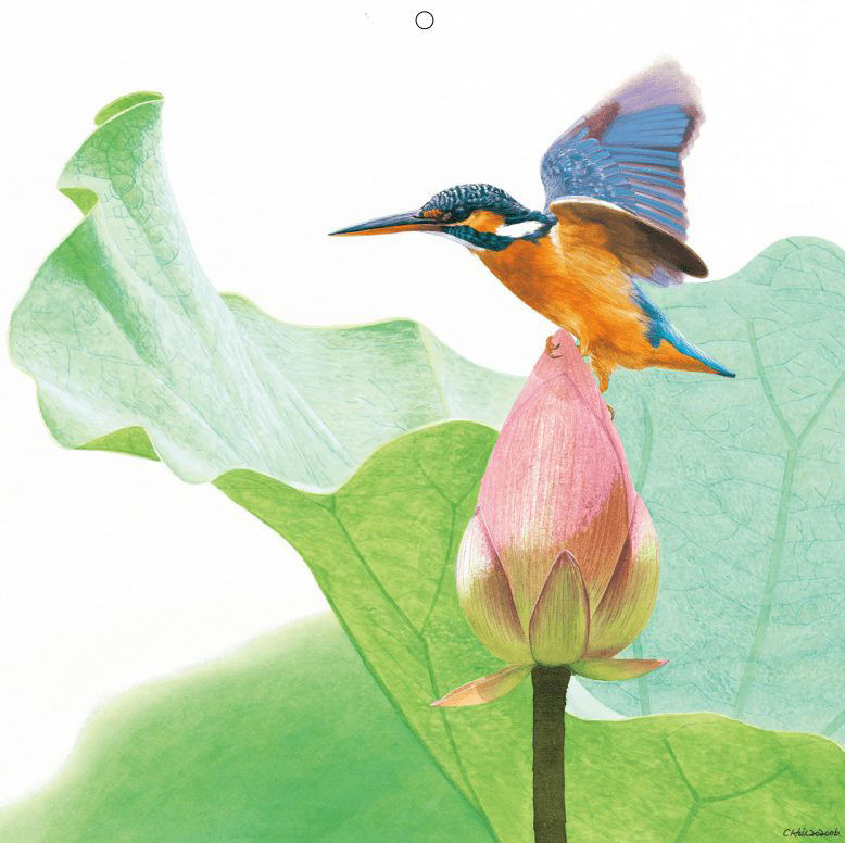 除了《翠鳥》繪本外,邱承宗此次出版,也以翠鳥+荷花為主題,製作了《藍羽安荷》的年曆。一年四季更迭,就像荷葉的姿態:翠綠、漸黃,一點斑駁至枯萎,最後新生。翠鳥和荷花的一動一靜,讓精美的翠鳥和荷花,陪伴度過新的一年!