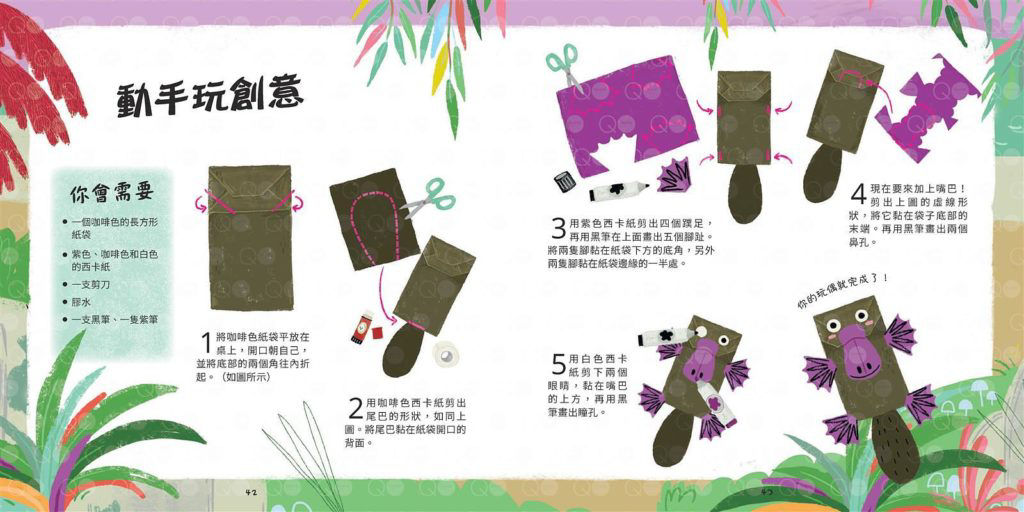 繪本的最後,都有附上可愛又有創意的動手做教學,在閱讀完繪本後,家長可以引領孩子一同動手完成屬於自己的小鴨嘴以及小獅子,是不是非常有趣呢?