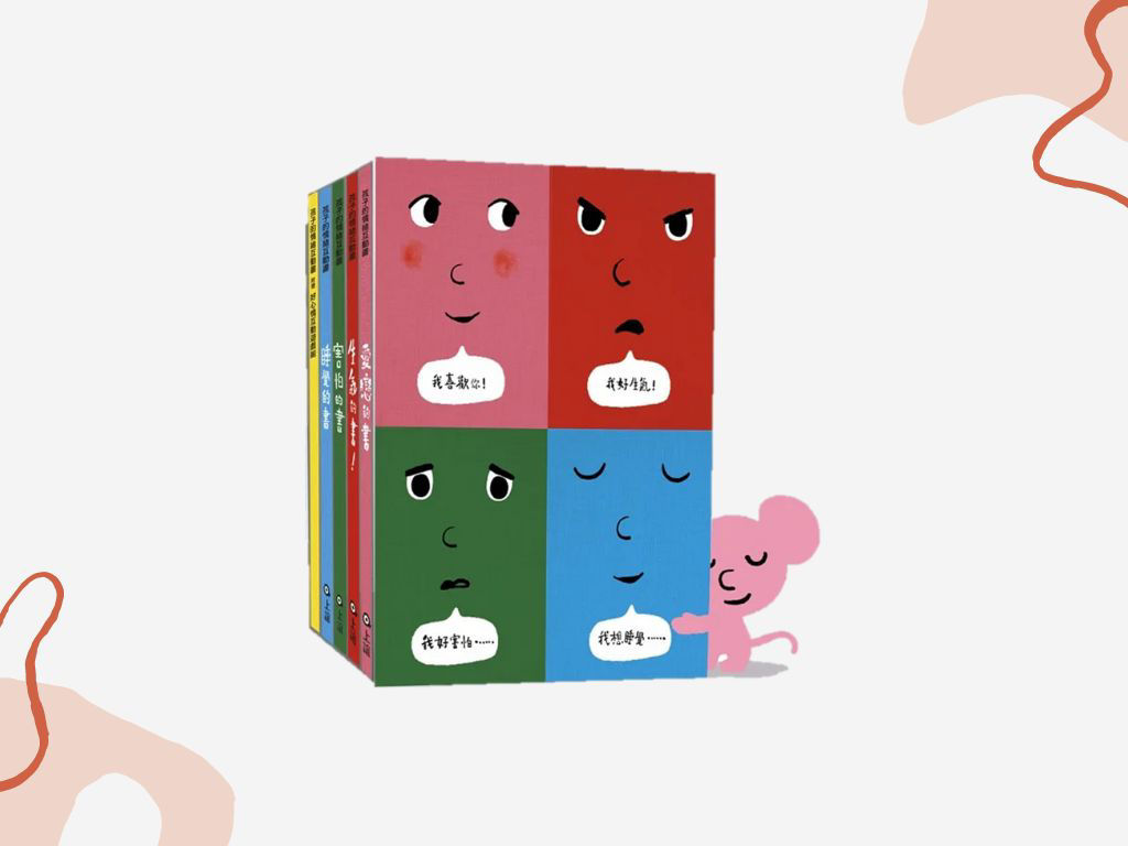 《孩子的情緒互動書》教孩子如何面對他人的情緒波動。透過聚焦在情緒發生時的面部特徵,用生動的「表情」,讓孩子學習透過臉部表情觀察別人的情緒。套書中有愛戀、生氣、害怕、睡覺四種情緒,可以讓孩子認識如何應對各種情許與對應的表情。