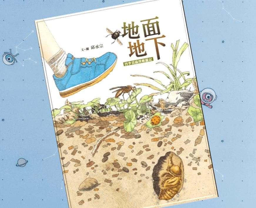 六月,當一隻獨角仙邁向生命的終章,另一隻則蛻變成蟲。在地面上下,各種小小昆蟲植物依循四季更迭,度過牠們的一生,你是否曉得呢?《地面地下》是臺灣首本入選「義大利波隆納國際插畫展非文學類插畫」的繪本,囊括國內外童書大獎無數,更名列「教育部國民中小學新生閱讀推廣計畫」推薦書單之中。本書看似僅以一隻獨角仙的生命為故事主軸,實則將其與構樹、黑棘蟻、推糞金龜相互對比,藉此描述萬物生態的時間軸,讓小讀者認識自然與土地的生生不息,是一本以微觀生物世界,宏觀自然之美的圖畫書。書末更有跨大拉頁設計,呈現地面上下四季週期光譜,並詳細列出全書中出現過的小生物介紹。