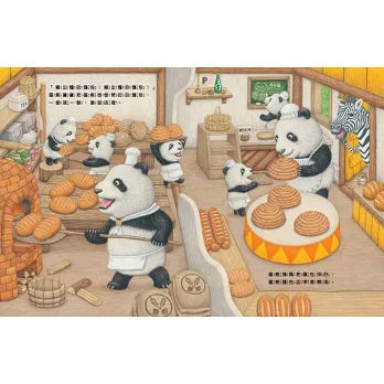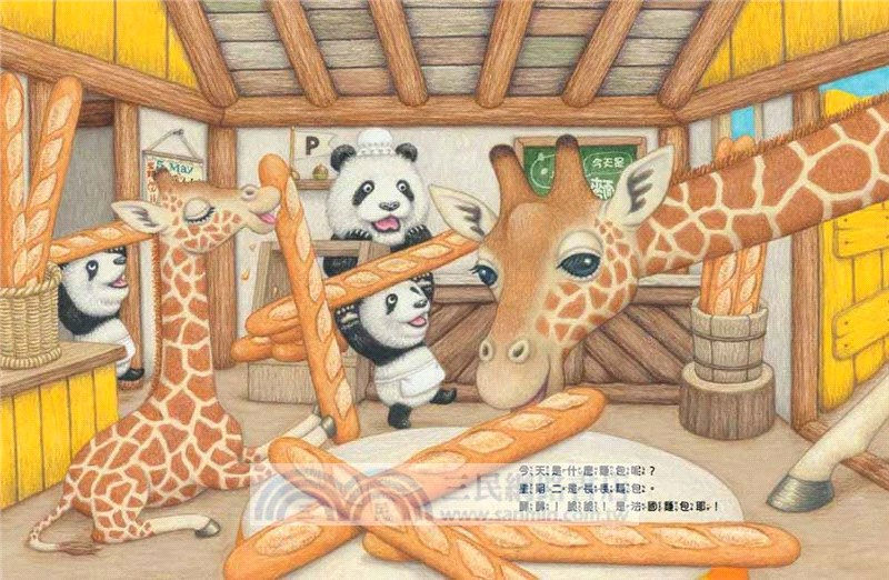 貓熊開麵包店?在繪本的世界中有各式各樣的想像,這樣的想像不見得有其固定的脈絡,但天馬行空總是一個吸引孩子目光的方式。