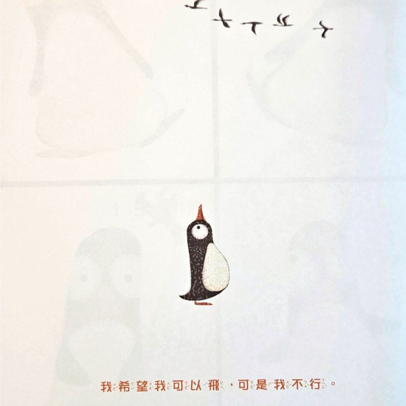 接著在後來,小企鵝遇到了海象,海象聽完他的抱怨後,跟小企鵝說了一些話,看似像長篇說教,裡面卻蘊含著值得省思的人生哲理,也就是情緒教育的第三步,接納情緒,與情緒共處。在抱怨的同時,溫柔的鼓勵所有孩子看見自己所擁有的、所身處的,是否有些尚未發掘的寶藏?生活會有些挑戰和不如意,但放眼四周,靜下來細細觀察與感受,是否也有許多令人開心、值得珍惜的事物?