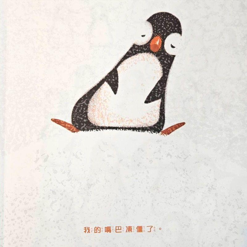 本書在藍.史密斯 Lane Smith的巧手下,細緻的描繪出鋪天蓋地的雪白與寧靜沉穩的湛藍,是閱讀起來很令人舒服的圖畫,而在這之中,卻不失本書主角—小企鵝的可愛活潑,搭配喬里.約翰 Jory John所設計口語簡單的對白,彷彿小企鵝活靈活現的在與我們說話。