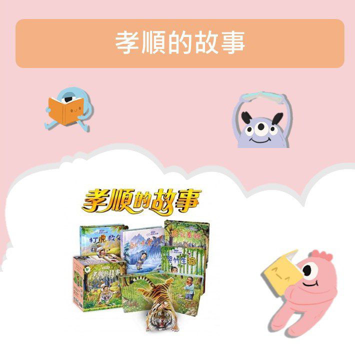 《孝順的故事》從二十四孝節錄四個故事,包含打虎救父、臥冰求鯉、鹿乳奉親、哭竹生筍。透過立體機關,生動地呈現二十四孝的故事場景。讓孩子能身歷其境,換位思考,體驗孝順的心情與思考情境。