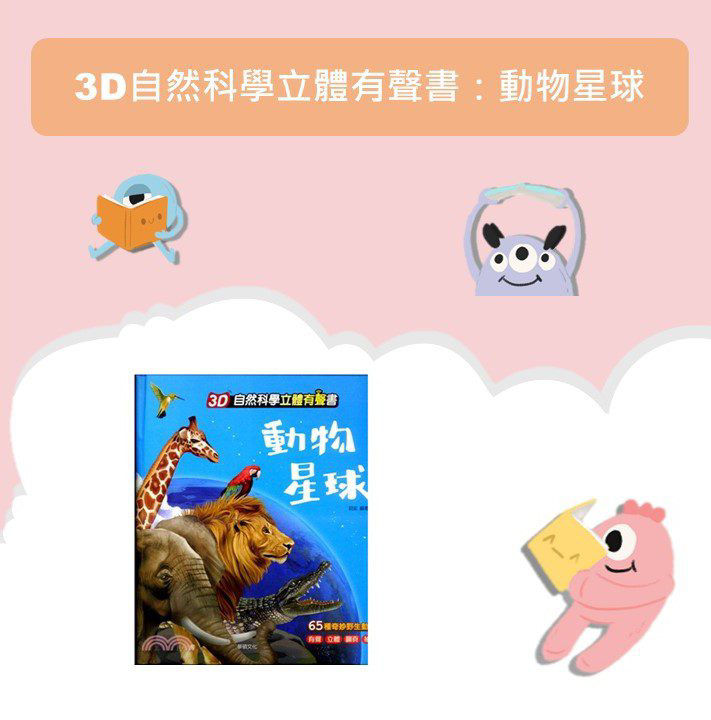 《3D自然科學立體有聲書:動物星球》透過更接近真實的動物圖片,以及模擬實際場景的音效與環境構成,讓孩子認識動物更真實的模樣。