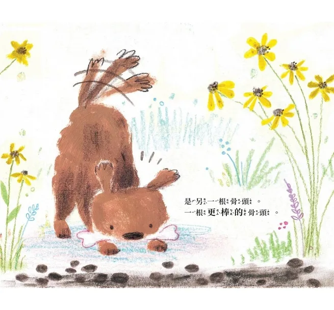 《更棒的骨頭》是曾獲得美國凱迪克大獎等多項大獎作者科瑞.R. 塔博的最新作品,同樣保有前作《翠翠掉下去了!》的清爽畫風,呈現狗狗賽門在池畔為了交換骨頭使出所有把戲的身影,在故事中具體呈現何謂「分享」,帶領孩子一同領悟其中的真諦,與家長一起陪伴小朋友發展良好的人際關係。