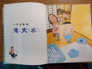 原本是風和日麗的一天,但沒想到山田家的孩子一起床就發現自己尿床了,就像是突然「淹大水」一樣。沒想到媽媽把棉被拿去洗衣機洗,洗衣機一故障把衣服全部都噴了出來,就像是一大早就開始「颳颱風」一樣。