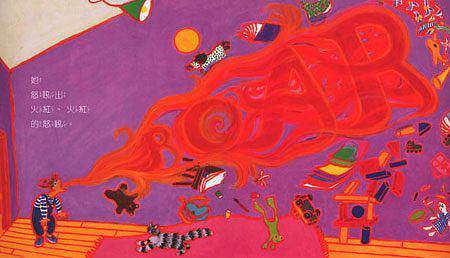這天,菲菲玩到一半的猩猩娃娃,被姊姊一把拿走了,因為已經輪到時間該姊姊玩了。但這樣的爭執讓菲菲勃然大怒,不僅要踢打、尖叫,還要把所有的東西都砸掉,他還怒吼出「火紅、火紅的咆哮」。