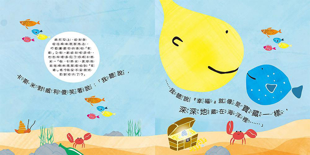 「幸福」是什麼?在親子共讀的時候,我們大概會不斷地在繪本中看到幸福兩個字,因為這不僅故事中恆常出現的結局,同時也是自古至今的人類所共同追求的一種狀態。不若特定領域的科學專有名詞,我們似乎都將幸福二字視為理所當然——不用特別去解釋它背後的意思;不過這樣的抽象概念,對孩子來說或許還不見得那麼容易理解。說起來,就算是大人,我們在言談中可能很常提到「幸福」二字,但當實際要回答什麼是幸福的時候,或許也不是那麼輕易地可以說出明確的答案。