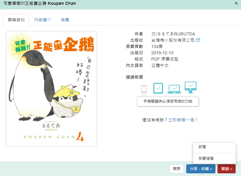 2.進入到該圖書館的雲端書庫後,尋找並點擊想借閱的繪本