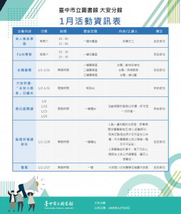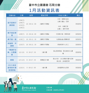 2021年第一個月的親子共讀活動懶人包熱騰騰的出爐啦!MindDuo精心挑選六都的親子共讀活動,簡介、時間、地點、活動方式一次看,貼心提醒:按下方的按鈕,就可以快速跳到該縣市的活動懶人包唷。 最近氣溫驟降,是近年來冬季最低溫度,參加活動的同時,大家要記得穿保暖,不要感冒囉!去年我們一起度過了最艱難一年,在這新的一年希望大家都可以越來越好,迎向更棒的一年。這次有許多劇場表演、雙語說故事、捏黏土活動,還有更多各縣市特別的親子活動等等。新的一年,不妨帶著孩子一起體驗更多屬於親子的歡樂時光,參加親子活動的同時也別忘了勤洗手、戴口罩,保護你、我、他,遠離病毒呦。