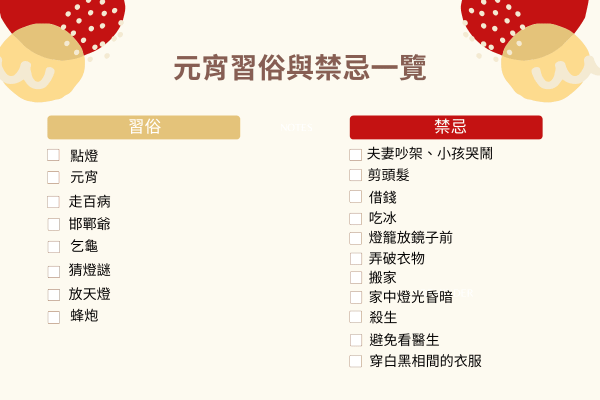 往下滑,小編將一一解釋活動與禁忌的由來: