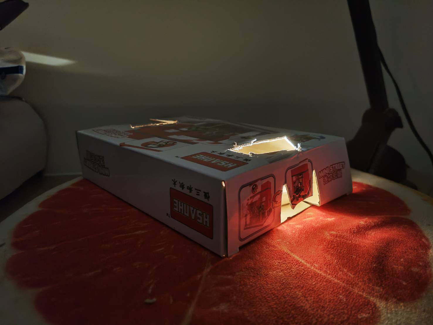 將手機或手電筒放進紙盒內,再開啟照明模式,將將!屬於你的簡易燈籠誕生啦~如果想向燈籠那樣「提著走」,可以在紙盒子的兩側串繩,成為行動式的元宵燈籠。