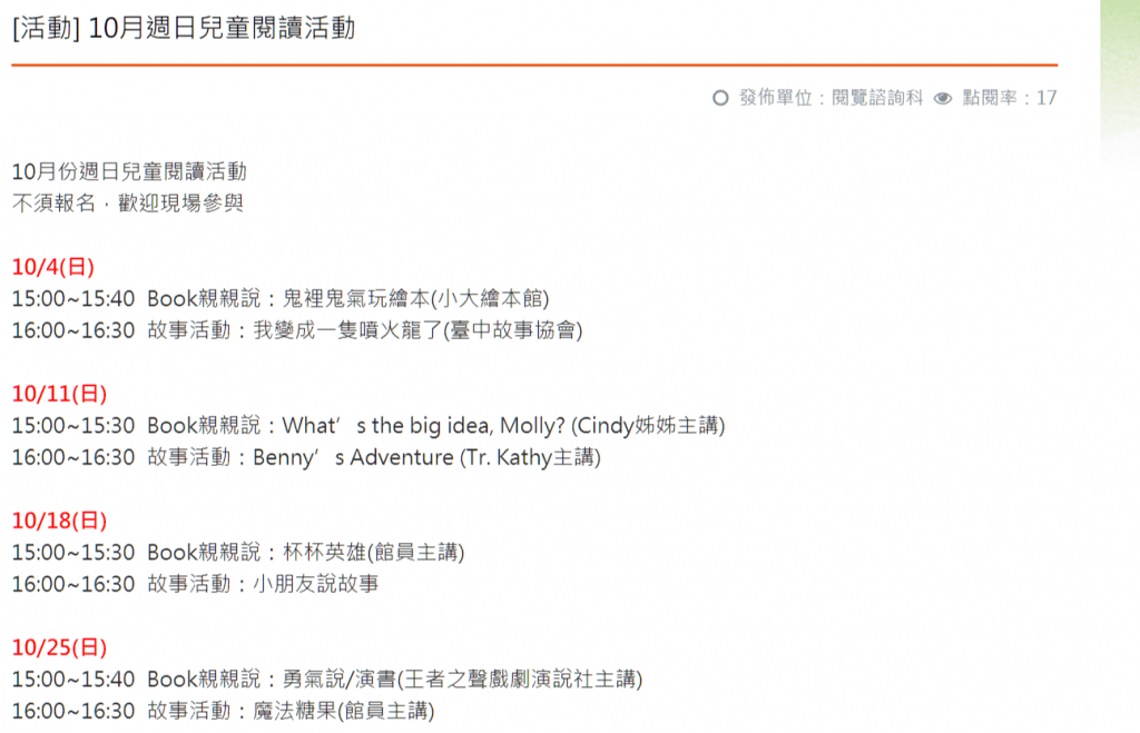 ■地點:臺中市南區五權南路100號(臺中國立公共資訊圖書館總館一樓兒童學習中心)