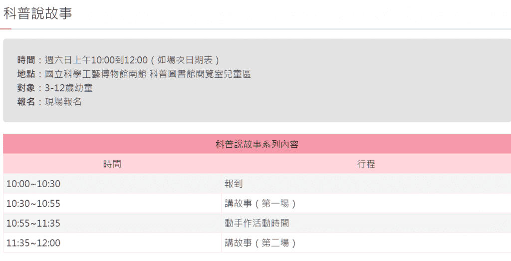 ■地點:每週六日10:00-12:00 國立科學工藝博物館南館 科普圖書館閱覽室兒童區