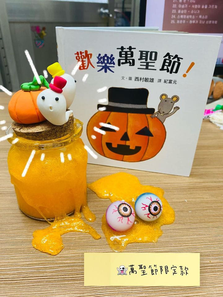■簡介: 萬聖節繪本+鼻涕蟲罐 (含蓋上黏土作品和兩顆跳跳眼睛)。這堂課捲捲姐姐要教小朋友如何像厲害的小巫師做出噁心又好玩的鼻涕蟲,小朋友可以自己調出想要的魔法顏色再加上跳跳眼睛.萬聖節限定的鼻涕蟲罐一定很吸精. 為了控管好上課品質和確保教室空氣流通,只能ㄧ位上課孩子加ㄧ位家長,並且配合能戴上口罩 量體溫的規定再報名上課。 費用統ㄧ再開班確定後再發匯款通知,ㄧ旦匯款完後無法前來請自行找人替上不退款喔!