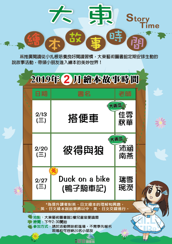 - 地點:大東藝圖1樓愛讀屋(高雄市鳳山區光遠路161號)