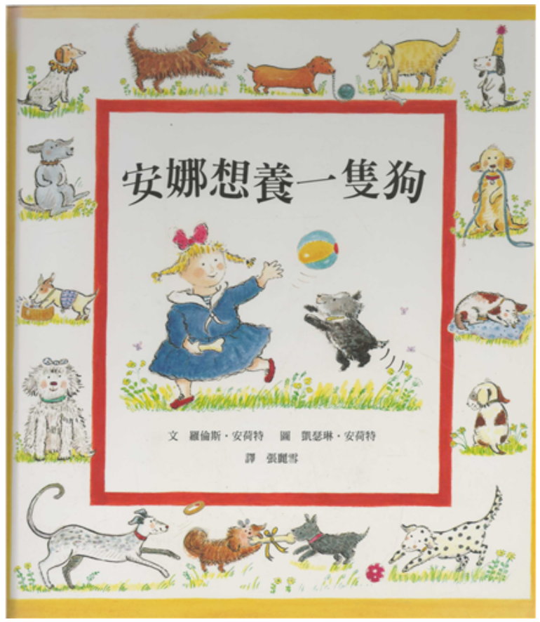 安娜想養一隻狗/羅倫斯.安荷特:孩子看到可愛的動物,時常會向爸媽提出飼養的要求,幻想可以和可愛的小動物玩耍,甚至晚上有個一起入睡的夥伴,但養動物除了快樂的時光之外,還有許多責任要負擔。故事中的小女孩安娜好不容易有了一隻真的小狗,隨之而來的卻是許多麻煩,小狗甚至咬壞了她最心愛的拖鞋,這時安娜才知道,原來養寵物不只是好玩,更要負起責任。