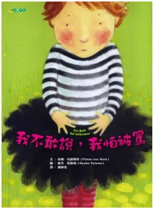 我不敢說,我怕被罵/皮姆.凡赫斯特:小女孩伊茉拉說有時候她會不想或是不敢說實話,但把這些話藏在肚子裡,其實很讓她傷腦筋,而伊茉拉的父母其實都把她的煩惱看在眼裡,最後選擇以愛包容,鼓勵伊茉拉把話說出口,藉由這本繪本,孩子可以學習到勇氣的重要。
