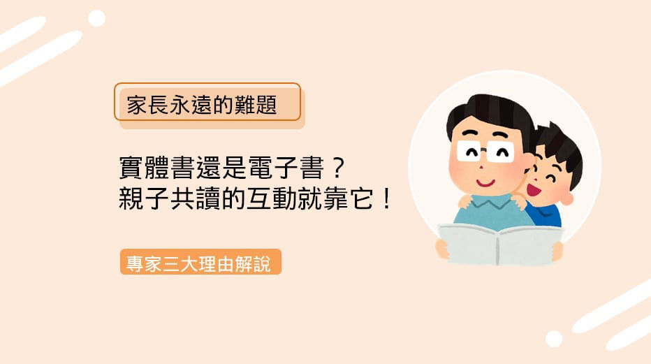 近年來,電子產品的普及讓許多人越來越不願意買書本,這樣的情形也體現在孩子閱讀習慣的培養上。越來越多的爸爸媽媽傾向使用電子書,與孩子共讀而非使用實體書。有些人認為電子書既環保又方便,薄薄的平板裡可以放上幾千幾萬本書,非常符合效率;但有些人認為實體書本還是有其存在的必要,不能因為電子書較為方便而全盤放棄實體書。究竟,使用電子書會對孩子閱讀習慣的培養造成甚麼影響呢?就讓我們一起來看看專家是怎麼說的吧!