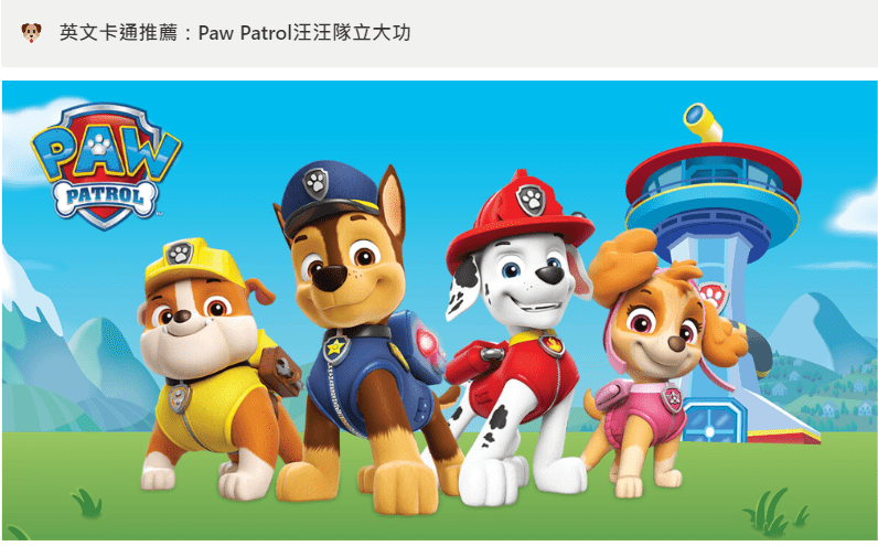 當Rubble他們開始用英文說話時,我偷偷問你:「聽懂他們在說什麼嗎?」你捧著小拳頭,認真地回答:「他們說要一起合作!」看來卡通比起學校課程,還是這種輕鬆的媒介更能刺激小寶貝學習哩。