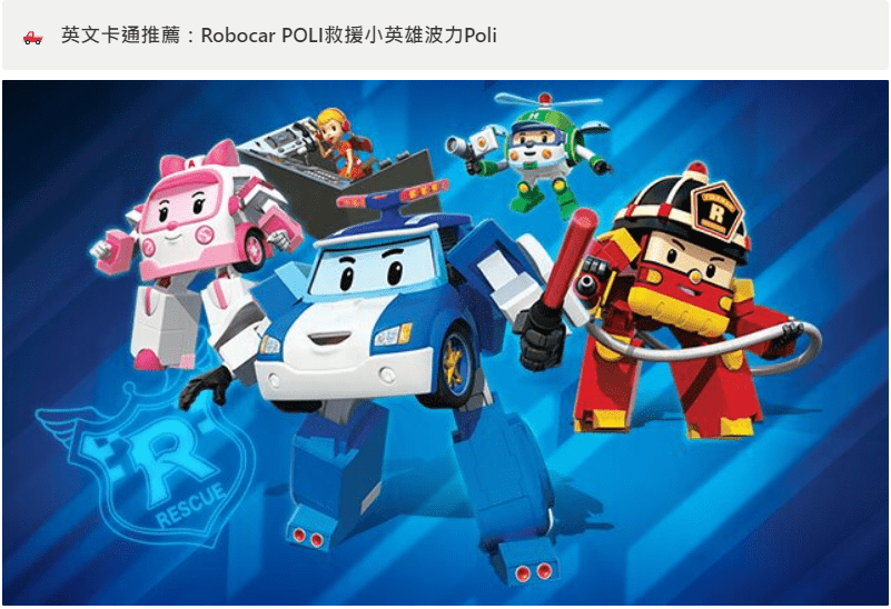 我想和大家分享我們一家人最喜歡的英文卡通節目之一,就是《Robocar POLI》!這部卡通不僅有趣,而且充滿了正能量。
