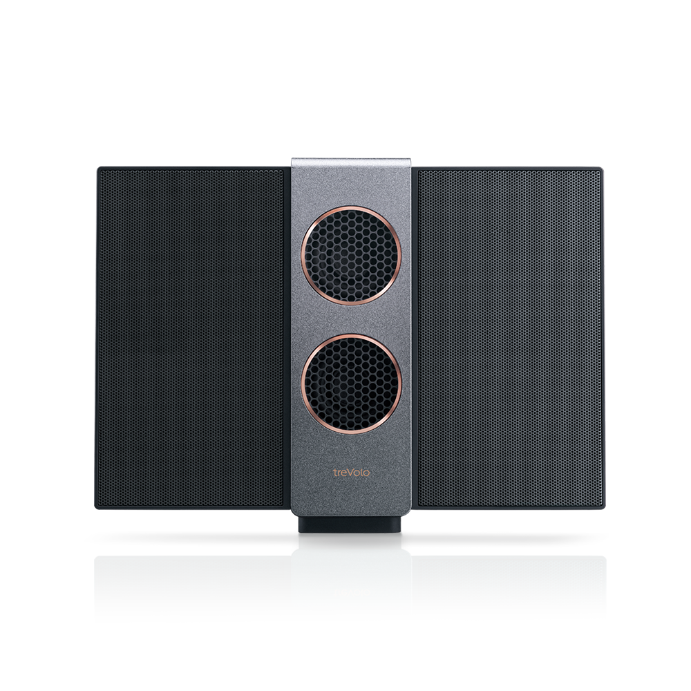 treVolo 獨家使用過去用於 Hi-End 等級音響相同的靜電薄膜技術。這項技術讓音樂的總諧波失真從 10% 降到少於 1%,因此相較傳統錐盆喇叭有十倍的進步,呈現出乾淨、清晰與通透的音質。
