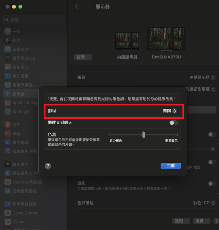 Mac 設定路徑:Apple 功能表>「系統設定」或「系統偏好設置」>顯示器
