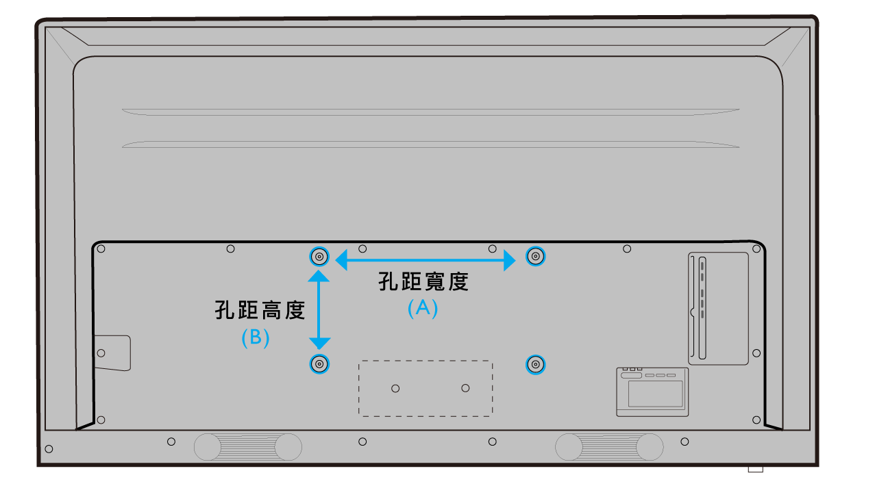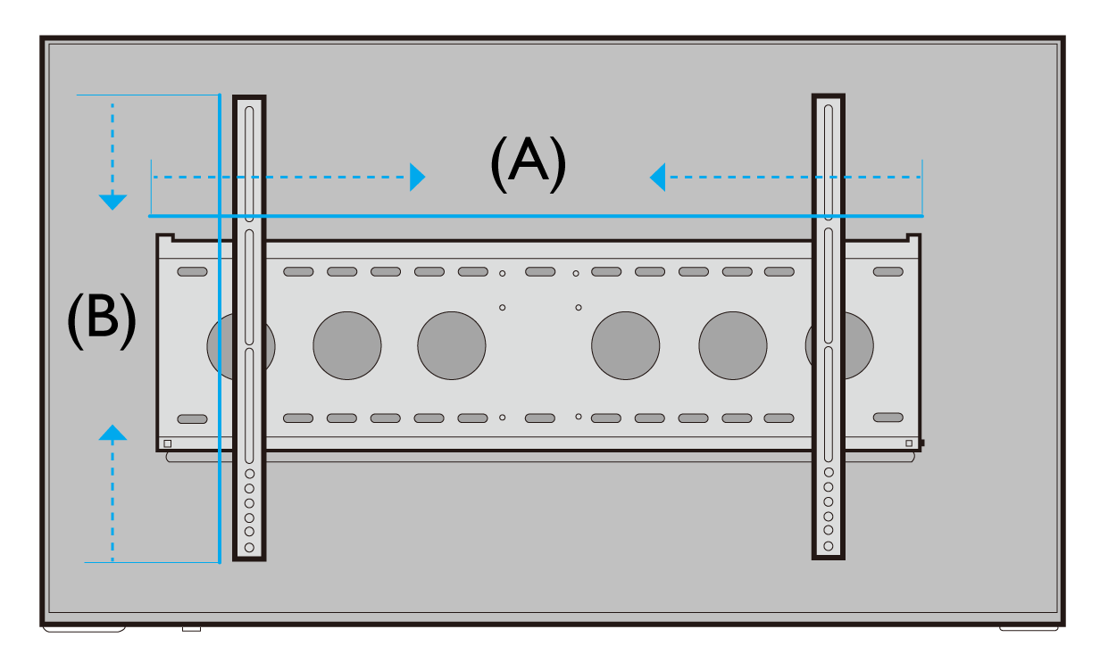 1. 請先量測家中舊的壁掛架寬度跟長度 (如下圖所標示紅色(A) 與(B)標示。)
