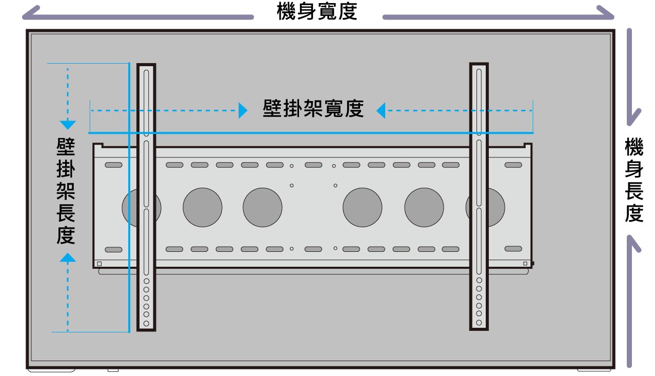 ●壁掛架的寬度與長度須小於電視機身的寬度與長度。